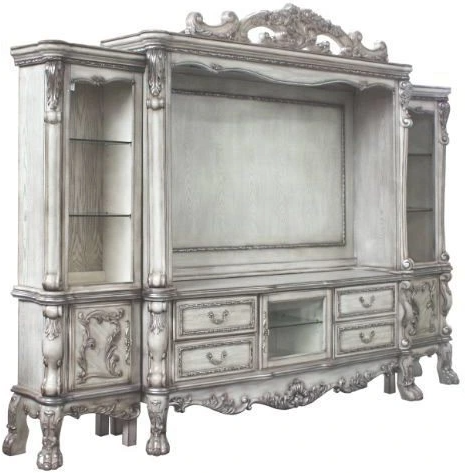 Staying like royalty with this Dresden, the entertainment center was inspired by old European design. This collection features carved scrollwork accent on the top bridge. This entertainment center will give you a royal sensation in the living room.Read More