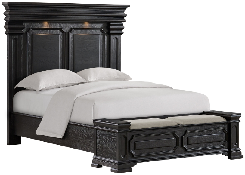 Features like LED lighting on the headboard and two integrated USB ports add modern convenience, while two upholstered storage drawers on the footboard enhance practical utility. Traditional in style and ageless in appeal, the Kings Court Queen Storage Bed in Black is an elegant addition to your bedroom.