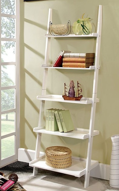 This unique ladder style accent piece has five shelves for display. Choose from either cherry, white, or black finish. The open layout allows easy access while maximizing floor space, making it suitable for living areas, bedrooms, or home offices.Read More