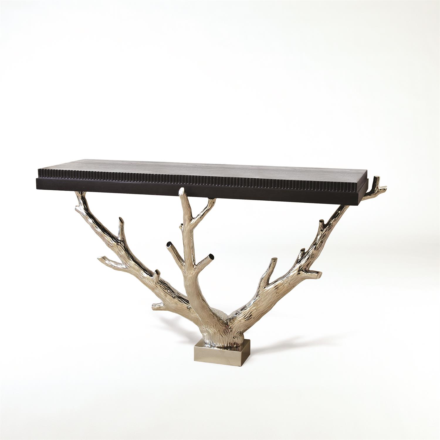 The Branch Wall Console is an artistically expressed functional piece of furniture. The top is hand planed with a carved fluted top edge and the striking branch across the front is cast aluminum. Item must attach to wallRead More