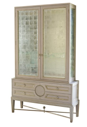 The Collector's Cabinet/dry bar would be the focal point of any room. Classically inspired lines, proportion and details are in sync with a youthful 21th century point of view. Front door, side panels and interior back are glass silver metal leaf eglomise panels.Read More