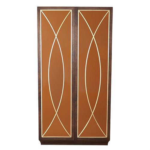 The Curve Cabinet is named for the arching curves of solid brass flat bar-stock that forms the shapes that define the beauty of this cabinet. These arching curves hold individually hand-cut back painted glass panels painted in a vibrant orange color which is on trend for Global Views for 2021. The interior has a bottom half that contains touch latch drawers and a top half that has an adjustable shelf and a fixed shelf to maximize your storage opportunities. Made of solid mango wood, the cabinet is stained in a rich walnut color which works very well with so many other wood tones in your home. A statement piece for sure to liven and brighten your special interiors.Read More