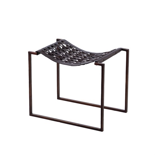 Luxurious leather and nickel finished iron join forces in this stunning stool. The intricate hand weaved pattern of the leather adds dimensionality to this statement piece.Read More