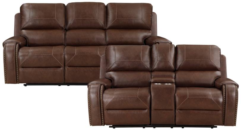 Double Reclining Sofa with Center Drop-Down Cup Holders, Receptacles and USB Ports - 8549BRW-3 | |