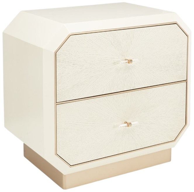 Every angle matters! The La Rachelle 2-drawer nightstand is created to bring a full-bodied shine to your bedroom style. With clipped corners and an exquisite starburst veneer pattern, we’re delivering chic style at every turn.Read More