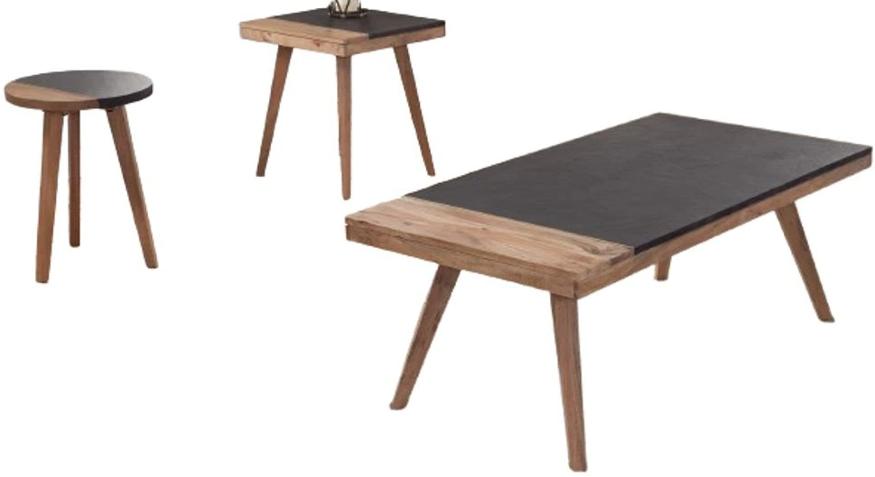 Add some flair to mid-century modern style with the Caspian occasional collection. These occasional tables feature linear splayed legs and a stunning top featuring natural acacia wood with slate bordered with a brass inlay for that extra little pop.Read More
