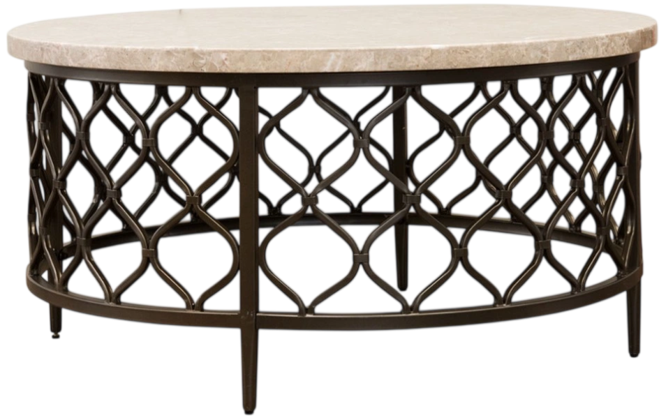 An open airy design and a beautiful mix of iron and white stone make the Roland Stone Top End Table a sophisticated addition to any home. Features a chic metal fretwork cylinder base and a gorgeous white stone tabletop.Read More